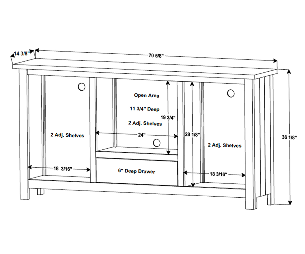 Dimensions: 73¼”W x 14â…ž”D x 39¼”H