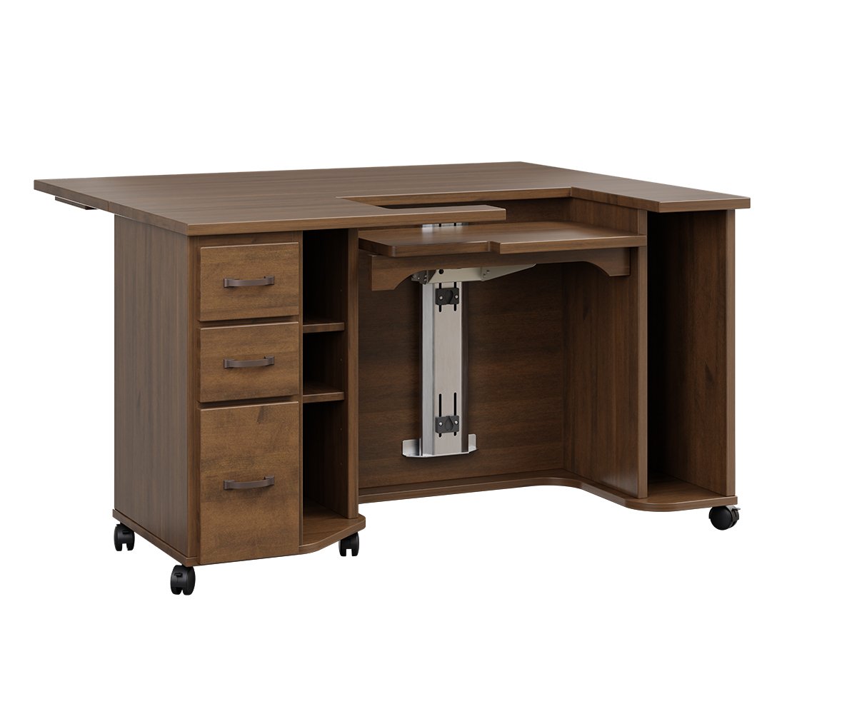 • Bottom drawer has two pullout spool pin boards