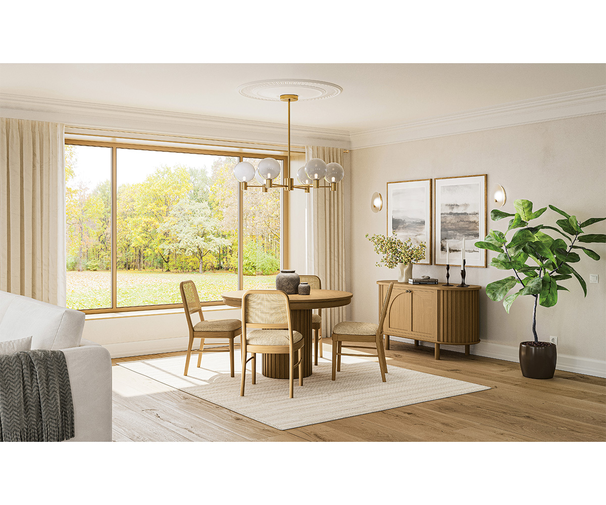 Shown With: Wood: White Oak Stain: Granola Fabric: R1-137 Palm