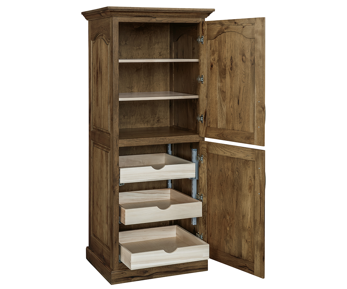 • Pullout shelves behind the bottom door