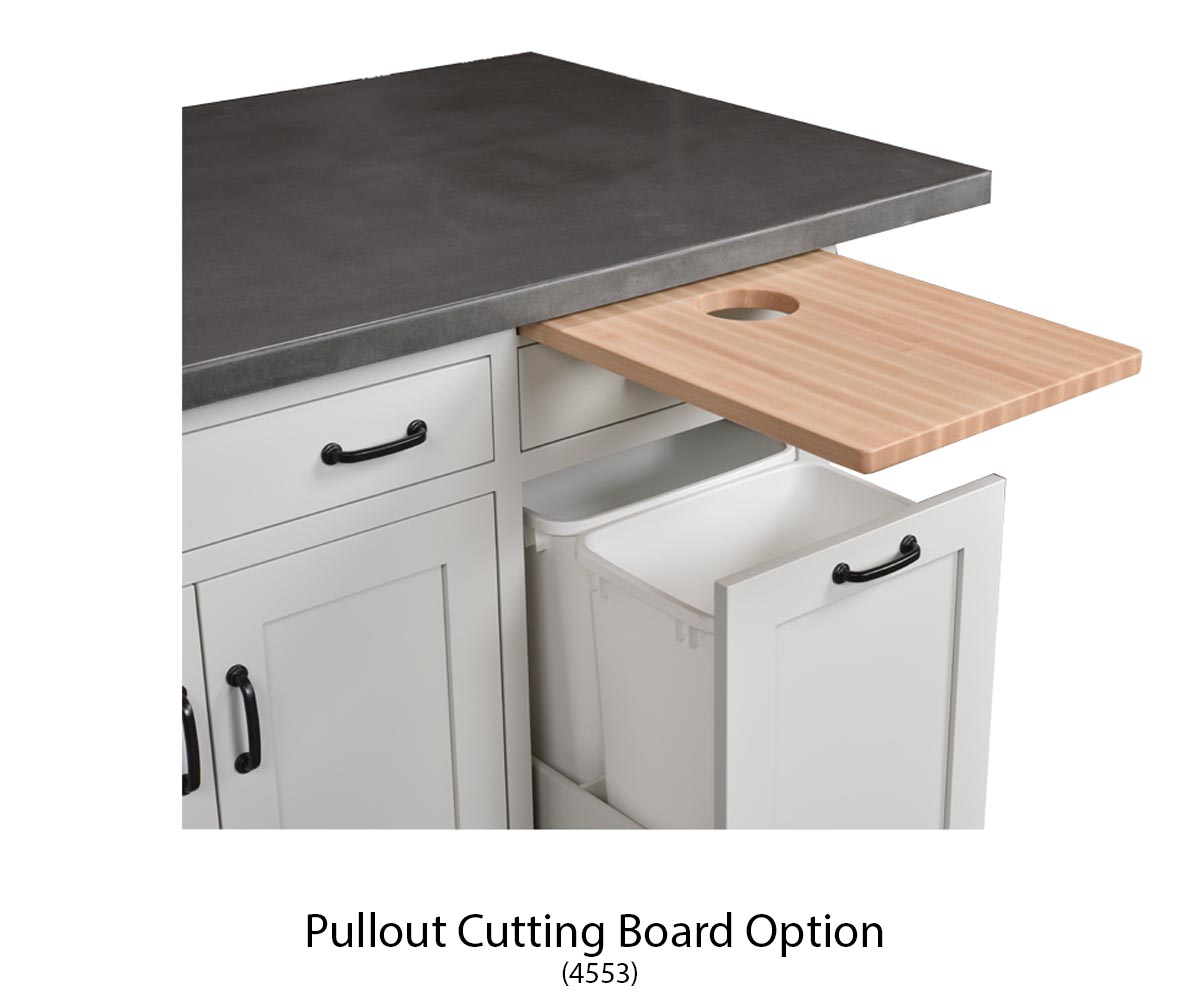 • Pullout cutting board above the waste basket