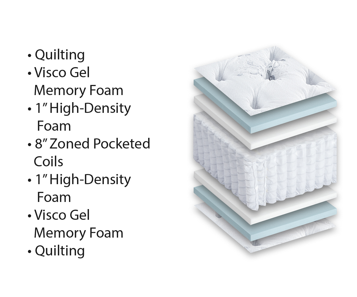 • Comfort layer: 1″ High-density foam and 1″ visco gel memory foam (per side)