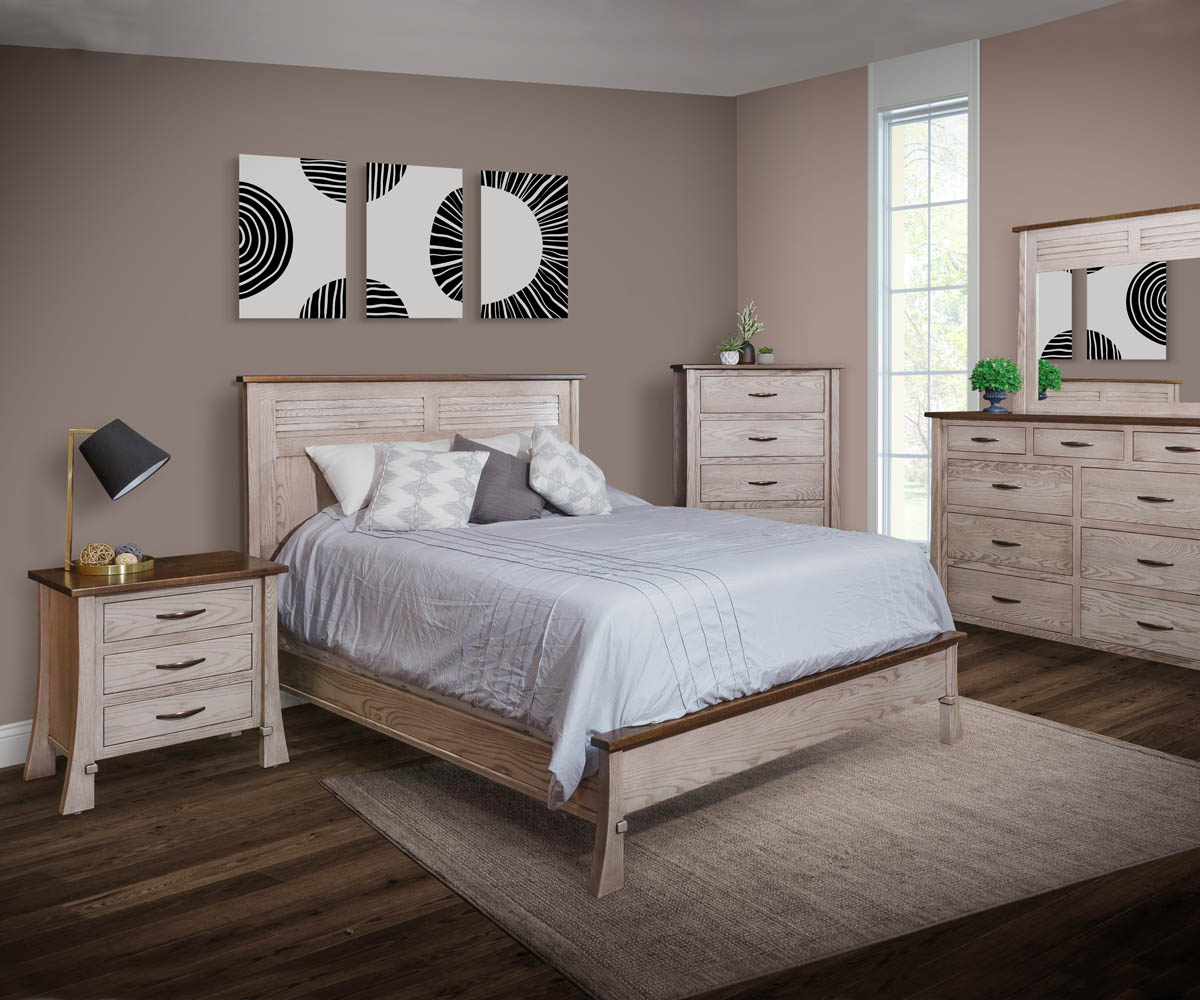 This Collection Includes: • Grant Bed • Tall Dresser • Regular Dresser • Chest of Drawers • Nightstand