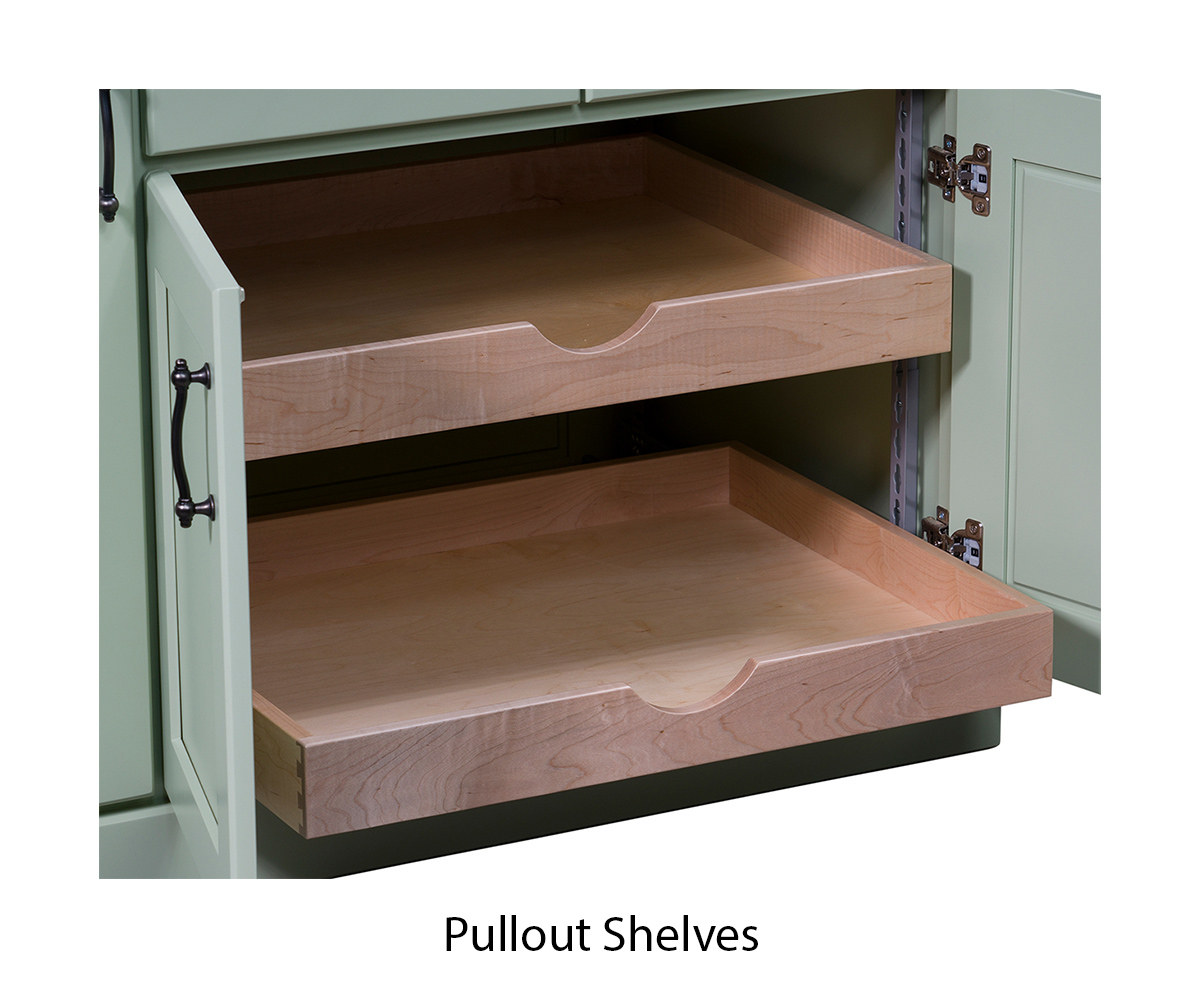 • Two pullout shelves behind the doors