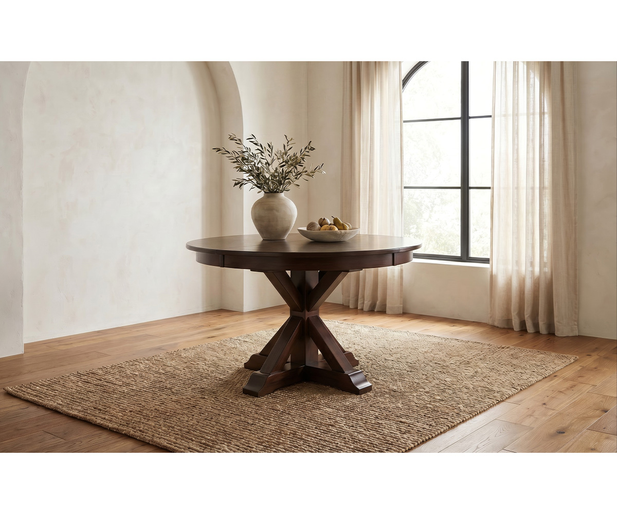 • 42″ Round: Two Leaves, Seats 6